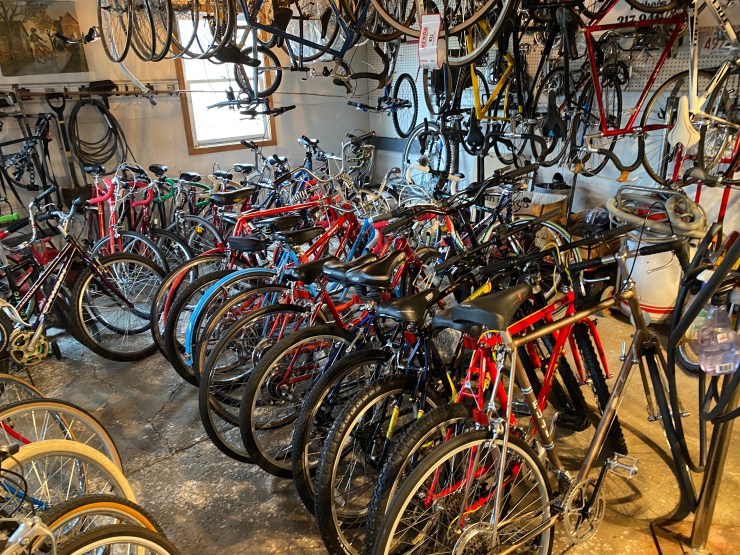 I’ve been busy over the winter, rebuilding some of the many bikes in my collection. I have done a great deal of Spring cleaning, and I’m ready to let some of these go. This is the first time I’ve been able to gather so many finished bikes (31 of them) together in the garage. The unfinished ones are in the basement and out of sight. The shop looks great, and I’m excited to begin selling again. Here are some pics of my recently advertised bikes for sale.