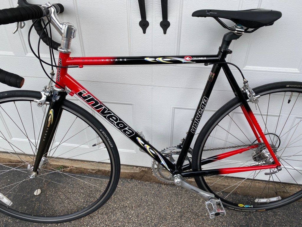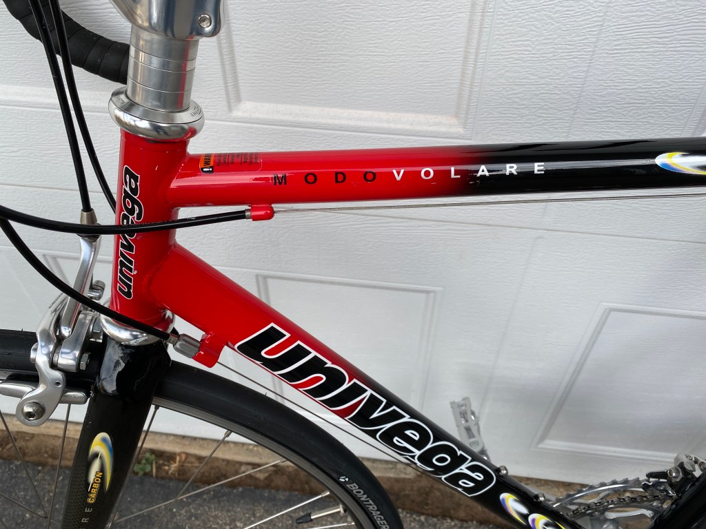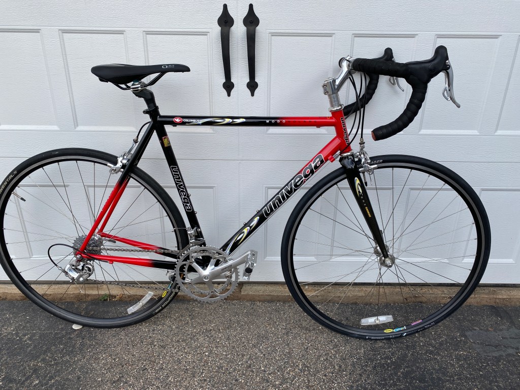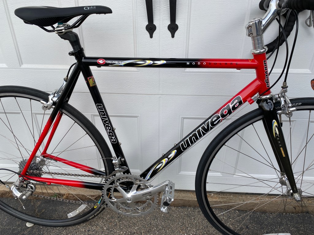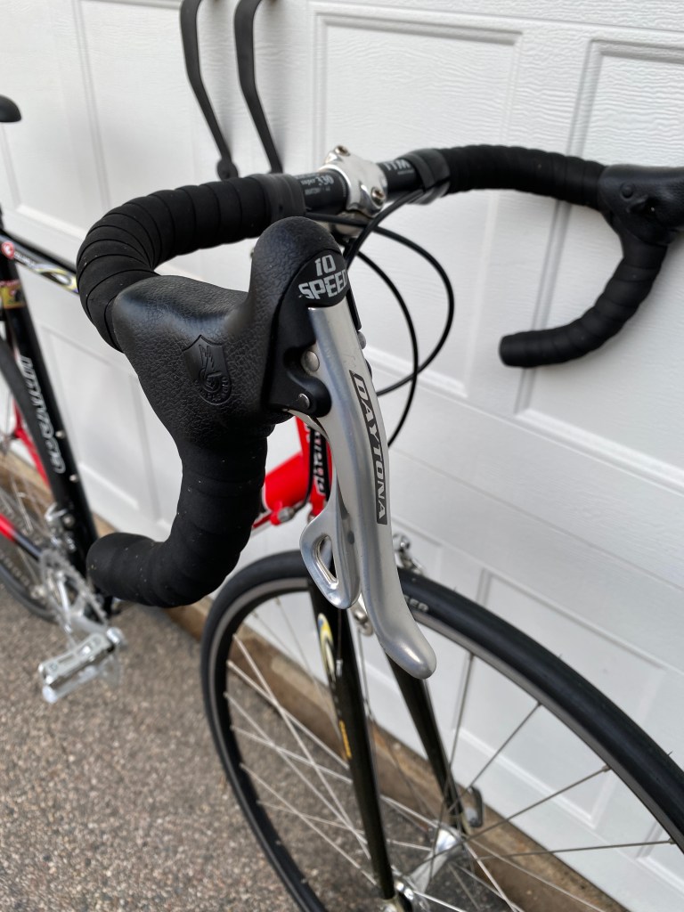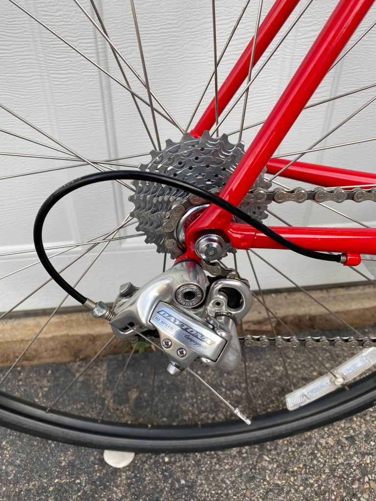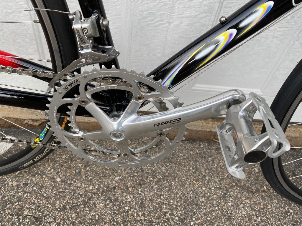 Here’s a bike I finished last fall. I have not see one of these before, so I wanted to share it here. It has carbon fiber forks, Campagnolo Daytona components, and Columbus Thron steel tubing.