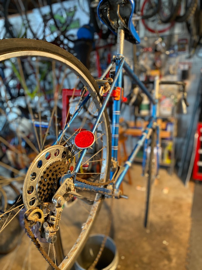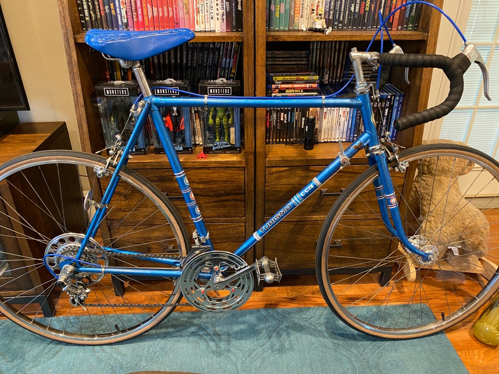 Every year I choose one sad-sack bike early in the Spring to rebuild. These are bikes that I picked up for nothing, or bikes that came with other deals, etc. They are typically department store bikes, which back then, did not signify low quality–but they were heavier and not as pretty as their bike shop counterparts. Last year it was my Huffy Thunder Trail 20″ kid’s dirt bike with a banana seat and a cool chain guard. This year it’s a Canadian-made CCM Turismo. It’s a heavy old 10-speed from the era of high striped socks, tinted prescription glasses, and The Six Million Dollar Man TV series.