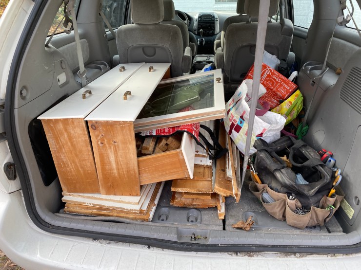 Recently, I have been working with a friend remodeling a house that he is flipping. We tore out an in-the-wall cabinet with drawers and shelves. I don’t like to see wood go to waste any more than I like scrap metal to go into the dump, so I took everything home.